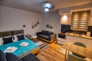 L'appartement de Efi's little treasure! comporte une chambre, une cuisine avec réfrigérateur et four, et une salle de bains avec douche, lave-linge et articles de toilette gratuits. Le linge de lit et les serviettes sont mis à disposition par l'établissement.