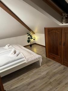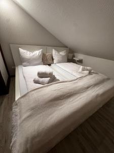 Questo appartamento comprende 3 camere da letto, una cucina con frigorifero e lavastoviglie e 1 bagno con doccia, asciugacapelli e lavatrice. Lenzuola e asciugamani sono a vostra disposizione presso einfachHEIMISCH - Dachstübchen.