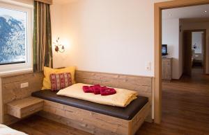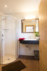 Alpine-style apartment with a double bed and a bunk bed for 2 persons, a fully equipped kitchen, a balcony, free WiFi, and a bathroom with a shower.