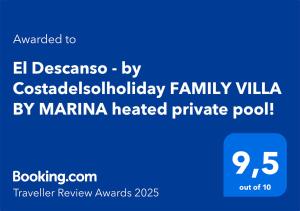 Featuring a DVD player, the spacious villa has a fully equipped kitchen with a dishwasher, an oven and a microwave, 3 living rooms with a seating area and a dining area, 5 bedrooms, and 5 bathrooms with a walk-in shower and a hot tub. This air-conditioned unit at El Descanso - by Costadelsolholiday FAMILY VILLA BY MARINA heated private pool! features a terrace for outdoor dining and a flat-screen TV with satellite channels. The accommodation offers a fireplace.
