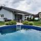Dieses Ferienhaus mit einer Terrasse und Poolblick hat 3 Schlafzimmer, ein Wohnzimmer, einen Flachbild-TV, eine gut ausgestattete Küche mit einem Kühlschrank und einem Geschirrspüler sowie 1 Badezimmer mit einer Badewanne. In diesem Ferienhaus werden Handtücher und Bettwäsche angeboten.