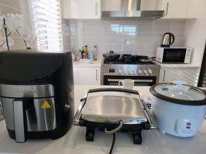 This spacious holiday home features 1 living room, 5 separate bedrooms and 3 bathrooms with a walk-in shower and a bath. The well-fitted kitchen has a stovetop, a refrigerator, a dishwasher and kitchenware. This air-conditioned holiday home comprises a dining area, a flat-screen TV with streaming services a washing machine and an electric kettle. The unit has 5 beds.