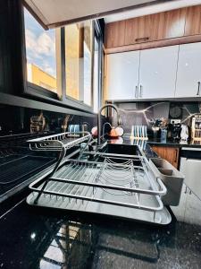 Klimatizovaný apartmán v Elegant & Contemporary Stay má 1 ložnici, kuchyň a TV s plochou obrazovkou.
