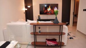 L\'appartement Elegant Apartment in Al-Masif Neighborhood comprend une chambre, une kitchenette et une télévision à écran plat.