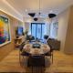 Apartmán Elegant apartment with 2 bedrooms poskytuje 2 ložnice, 2 koupelny, ložní prádlo, ručníky, TV s plochou obrazovkou, jídelní kout a plně vybavenou kuchyň. Ubytování Elegant apartment with 2 bedrooms nabízí také terasu s výhledem do zahrady. Koupelna v ubytování je vybavena vanou nebo sprchou, pračkou, fénem a toaletními potřebami zdarma.