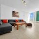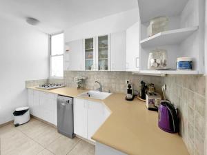 Klimatizovaný apartmán Elegant Beachside Apartment tvoří 3 ložnice, obývací pokoj, plně vybavená kuchyň s lednicí a myčkou a 2 koupelny. Koupelna je vybavená vanou.