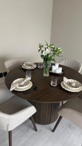 Tento apartmán v přízemí má 1 ložnici, TV s plochou obrazovkou a kuchyň s kompletním vybavením včetně lednice, myčky nádobí, pračky, trouby a varné desky. Apartmán Elegant city apartment in Bergen- Private outdoor patio and free parking poskytuje hostům ručníky a ložní prádlo.