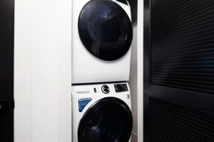 El apartamento con aire acondicionado de el alojamiento dispone de 2 dormitorios, sala de estar, cocina con nevera y cafetera, y 2 baños con ducha y artículos de aseo gratis. El apartamento Elegant Corner Penthouse with Private Balcony, Skyline Views, Pool, and Gym dispone de toallas y ropa de cama.