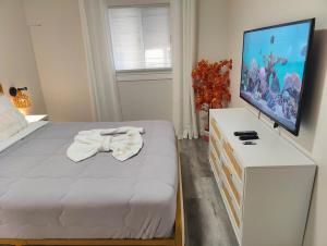 Boasting a private entrance, this air-conditioned holiday home includes a kitchen, 3 bedrooms and 1 bathroom with a bath and a shower. In the fully equipped kitchen, guests will find a stovetop, a refrigerator, a dishwasher and kitchenware. Featuring a terrace with garden views, this holiday home also offers a washing machine and a flat-screen TV with streaming services. The unit has 3 beds.