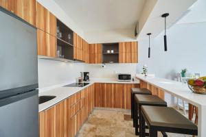 L'appartement climatisé du Elena 101 beautiful one bedroom in Aldea Zama comprend une chambre, une télévision à écran plat et une cuisine avec réfrigérateur et micro-ondes. Des serviettes et du linge de lit sont disponibles à l'établissement.