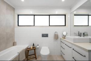 This holiday home features a private pool. The holiday home's kitchen is available for cooking and storing food. The spacious air-conditioned holiday home features a flat-screen TV with streaming services, a washing machine, a private entrance, a dining area as well as garden views. The unit is furnished with 5 beds.