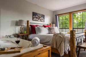 Chambres: 1This luxurious chalet provides a pool with a view, a hot tub and a fireplace. Guests can make meals in the kitchen that features a stovetop, a refrigerator, a dishwasher and kitchenware. The spacious air-conditioned chalet features a flat-screen TV with streaming services, a washing machine, a private entrance, soundproof walls as well as garden views. The unit has 2 beds.