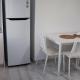 Die klimatisierten Wohneinheiten verfügen über eine voll ausgestattete Küche mit einem Essbereich, einem Kühlschrank, einer Kaffeemaschine und einem Geschirrspüler. Ein Ofen, eine Mikrowelle sowie ein Wasserkocher sind ebenfalls vorhanden.