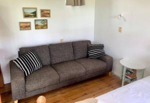 Featuring a private entrance, this holiday home also consists of 1 bedroom, a seating area and 1 bathroom with a walk-in shower and a bath or a shower. In the kitchen, guests will find a stovetop, a refrigerator, kitchenware and an oven. The holiday home features a tea and coffee maker, a dining area, a sofa as well as a terrace with sea views. The unit offers 2 beds.
