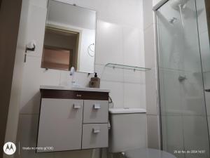 L'unità climatizzata di Em Natal, aptº 2/4 inteiro em condomínio fechado. offre 2 camere da letto, soggiorno, bagno con doccia e cucina con frigo e macchina da caffè. Presso Em Natal, aptº 2/4 inteiro em condomínio fechado. la dotazione include lenzuola e asciugamani.