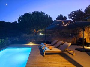 This villa boasts a pool with a view and a fireplace. Featuring a private entrance, this air-conditioned villa consists of 1 living room, 1 separate bedroom and 1 bathroom with a walk-in shower and a bath. Guests will find a stovetop, a refrigerator, a dishwasher and kitchenware in the kitchenette. The villa also offers a barbecue. Boasting a terrace with garden views, this villa also provides soundproof walls and a flat-screen TV with cable channels. The unit offers 2 beds.
