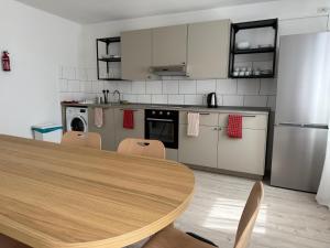 The spacious apartment offers a tea and coffee maker, a wardrobe, as well as a shared bathroom boasting a shower and a hairdryer. Guests can make meals in the kitchen that is fitted with a refrigerator, kitchenware and a microwave. The apartment provides a dressing room and heating. The unit is furnished with 6 beds.