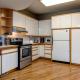 Die Küche ist ausgestattet mit einem Kühlschrank und einem Geschirrspüler, einem Ofen sowie einem Wasserkocher.