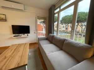 El apartamento con aire acondicionado en el alojamiento consta de 2 dormitorios, sala de estar, baño con bidet y secador de pelo, y cocina completa con nevera y cafetera. El alojamiento Empuriabrava Gran Reserva está equipado con TV de pantalla plana.