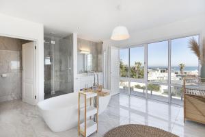 Guests will have a special experience as the holiday home features a fireplace. Featuring a private entrance, this spacious holiday home also consists of 5 bedrooms, a seating area and 5 bathrooms with a bath and a shower. Guests can make meals in the kitchen that is equipped with a stovetop, a refrigerator, a dishwasher and kitchenware. Boasting a balcony with sea views, this holiday home also provides a tea and coffee maker and a TV. The unit provides 5 beds.