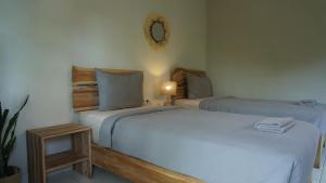 Alle Wohneinheiten im Endless Summer Surf Camp Kuta verfügen über ein eigenes Bad mit Dusche, Haartrockner und kostenlosen Pflegeprodukten.