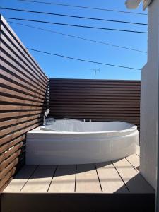 Guests will have a special experience as this holiday home offers a private open-air bath. Featuring a private entrance, this air-conditioned holiday home comprises 1 living room, 3 separate bedrooms and 1 bathroom with a bath and a shower. The well-fitted kitchen features a stovetop, a refrigerator, kitchenware and a microwave. The spacious holiday home provides a flat-screen TV with streaming services, a washing machine, a coffee machine, a sofa as well as sea views. The unit offers 4 beds and 2 futons.