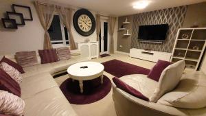 This holiday home comes with 2 living rooms, 3 separate bedrooms and 3 bathrooms with a shower and a hairdryer. In the well-equipped kitchen, guests will find a refrigerator, an oven, a microwave and a toaster. This holiday home has a washing machine, flat-screen TV with streaming services, garden views, as well as chocolate for guests. The unit has 4 beds.
