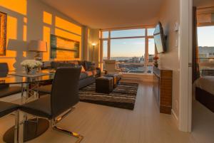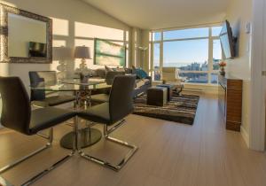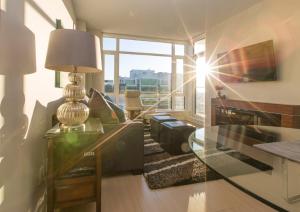 The apartment's kitchen is available for cooking and storing food. The apartment provides air conditioning, a washing machine, tumble dryer, heating, as well as a TV.