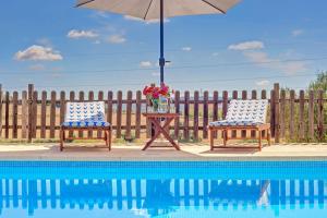 The private pool and fireplace are the special features of this villa. Featuring a private entrance, this villa is comprised of a kitchen, 2 bedrooms and 1 bathroom with a bath and a hairdryer. Guests will find a stovetop, a refrigerator, a dishwasher and kitchenware in the fully equipped kitchen. The villa also has a barbecue. Boasting a terrace with mountain views, this villa also offers a washing machine and a TV with satellite channels. The unit offers 3 beds.