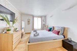Apartmán ubytování nabízí 1 ložnici, 1 koupelnu, plně vybavenou kuchyň s jídelním koutem a lednicí a obývací část s TV s plochou obrazovkou. Koupelna v Escapade à Versailles - 3 min de Versailles Chantiers zahrnuje sprchu a toaletní potřeby zdarma. V ubytování Escapade à Versailles - 3 min de Versailles Chantiers jsou pro hosty připraveny ručníky a ložní prádlo.
