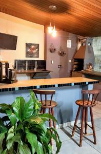 Esta casa o chalet tiene acceso directo a una terraza con vistas al jardín y cuenta con 1 dormitorio y cocina totalmente equipada. El alojamiento Espaço G - Aluguel para eventos e hospedagem está equipado con TV de pantalla plana.