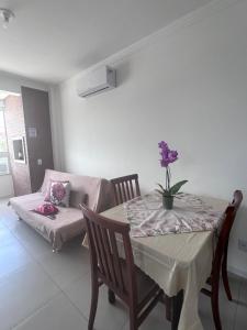 Klimatizovaný apartmán Espaço Malanje - AP Novinho 400m do mar - Florianopolis tvoří 1 ložnice, obývací pokoj, plně vybavená kuchyň a 1 koupelnu. Apartmán má také koupelnu.