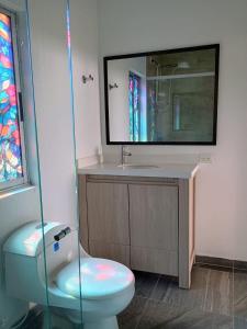Tento prázdninový dům má 1 ložnici, 3 koupelny, ložní prádlo, ručníky, TV s plochou obrazovkou, jídelní část a kuchyň s kompletním vybavením. Ubytování Espectacular El Peñol, Guata Pe nabízí také terasu s výhledem do zahrady. Koupelna je vybavená vířivkou.