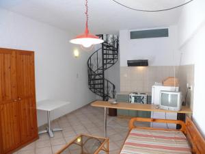 Situated in a pleasant courtyard with private swimming pool, these spacious air-conditioned maisonettes are ideal for families or groups of 4-5 people. The rooms are on 2 levels separated by a spiral staircase. On the ground floor there is the kitchen and living area, which sleeps 2 people. There is a master bedroom on the upper level. Both floors have their own bathroom and there is also a balcony with a view of the sea or the pool. The nearest beach and super market is just 400 metres away.