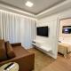 Klimatizovaný apartmán Estilo&Conforto * Shopping Aurora zahrnuje 1 ložnici, TV s plochou obrazovkou a kuchyň s lednicí a troubou.
