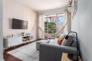 Con accesso diretto a un balcone con vista sul giardino, questo appartamento con aria condizionata comprende 1 camera da letto e una cucina con utensili. Estrela do Leme mette a vostra disposizione una TV a schermo piatto.