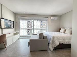 Klimatizovaný apartmán Estúdio 905 - Conforto no centro zahrnuje 1 ložnici, TV s plochou obrazovkou, jídelní kout, kuchyň s lednicí a obývací pokoj. Apartmán Estúdio 905 - Conforto no centro poskytuje hostům ručníky a ložní prádlo.
