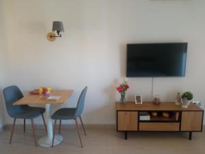 Guests can make meals in the kitchen that is equipped with a stovetop, a refrigerator, kitchenware and a microwave. The studio provides air conditioning, a washing machine, a terrace with sea views as well as a private bathroom featuring a shower. The unit offers 2 beds.