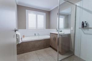 Featuring a private entrance, this air-conditioned holiday home comprises 3 living rooms, 4 separate bedrooms and 2 bathrooms with a bath and a shower. Guests will find a stovetop, a refrigerator, a dishwasher and an oven in the kitchen. The holiday home also provides guests with a barbecue. This holiday home features a washing machine, flat-screen TV with streaming services, lake views, as well as wine/champagne for guests. The unit offers 8 beds.