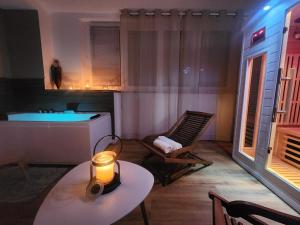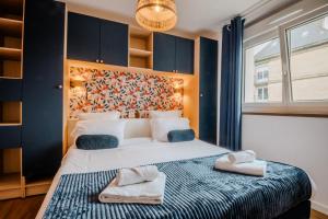 This apartment features a hot tub and a sauna. This spacious apartment features a kitchen, a seating area, 1 separate bedroom and 2 bathrooms with a bath and a shower. Guests can make meals in the kitchen that has a stovetop, a refrigerator, a dishwasher and kitchenware. This apartment has a washing machine, flat-screen TV, city views, as well as chocolate for guests. V této ubytovací jednotce se nachází 1 postel.