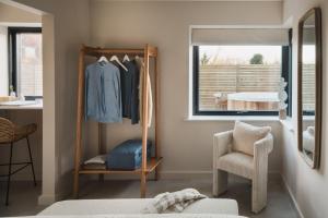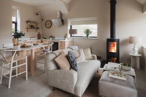 The well-fitted kitchen features a stovetop, a refrigerator, an oven and a microwave. The holiday home offers a washing machine, a dining area, as well as a private bathroom featuring a shower and a hairdryer.