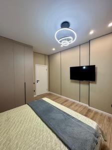 Diese Ferienwohnung mit 1 Schlafzimmer bietet den Gästen Flachbild-TV, eine Klimaanlage und ein Wohnzimmer. Die Küche im Двухкомнатная квартира в ЖК Everest verfügt über eine Minibar.