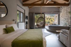 This quadruple room's standout features are the hot tub, spa bath and fireplace. This air-conditioned quadruple room is comprised of a flat-screen TV with streaming services, a private bathroom as well as a balcony with mountain views. The unit has 2 beds.