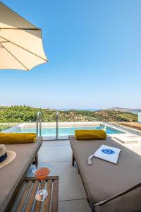 This suite has a tile/marble floor, flat-screen TV and sofa. This is a Deluxe Suite with Private Pool.