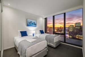 This apartment has a balcony, washing machine and air conditioning. Each bedroom includes a king bed which can be split into 2 single beds. Single fold-up beds are provided for booking above 6 guests.