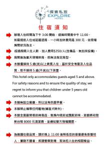 Featuring a shared lounge, Explore Hotel offers rooms in Xitun, 300 metres from Fengjia Night Market, 2.1 km from Taichung Football Field and 2.2 km from Shin Kong Mitsukoshi Taichung Zhonggang. The property is set 2.3 km from Top City Taichung, 2.5 km from National Taichung Theatre and 2.5 km from Commercial Exhibition Centre Taichung. The accommodation provides a 24-hour front desk. Free WiFi and parking are available.