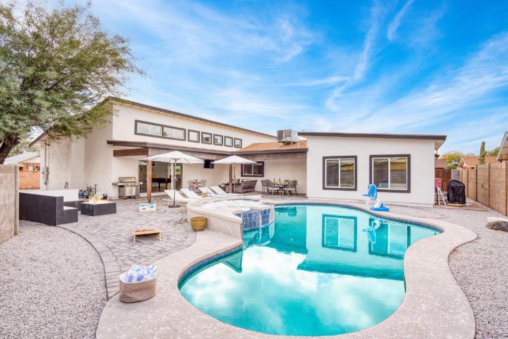 The spacious holiday home features air conditioning, a washing machine, as well as a private bathroom boasting a hairdryer. Guests will find a stovetop, a refrigerator, a dishwasher and kitchenware in the well-fitted kitchen. The holiday home also includes a barbecue. This holiday home has a tea and coffee maker, tumble dryer, a TV and a patio.