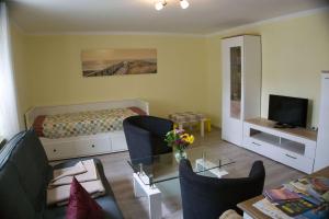 Апартаменты F-1041 Ferienwohnung Greta состоят из 1 спальни, гостиной, оборудованной кухни с холодильником и кофемашиной, и 1 ванной комнаты с душем. Среди удобств - телевизор.