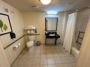 Offers a 32-inch flat-screen cable TV, desk and refrigerator.