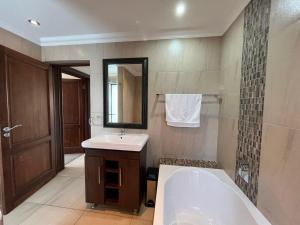 The spacious double room features air conditioning, a tea and coffee maker, a balcony with garden views as well as a private bathroom boasting a bath.